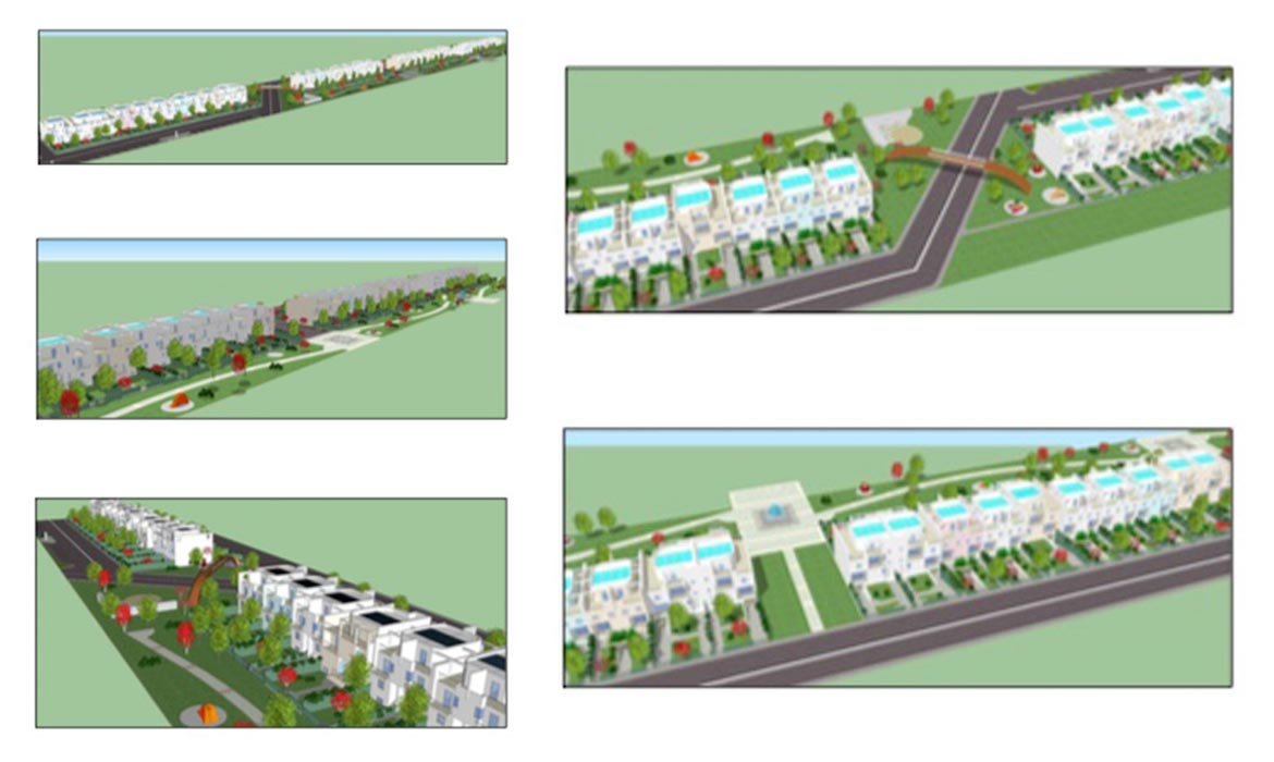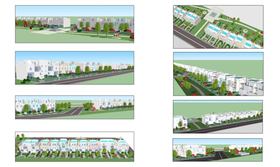Le immagini sono riferite alla progettazione, a Marconia, del Piano di Lottizzazione che prevede la realizzazione di circa 50 ville a schiera che si sviluppano su 3 piani. Il P. di L. comprende tutte le opere di urbanizzazione primaria e secondaria.