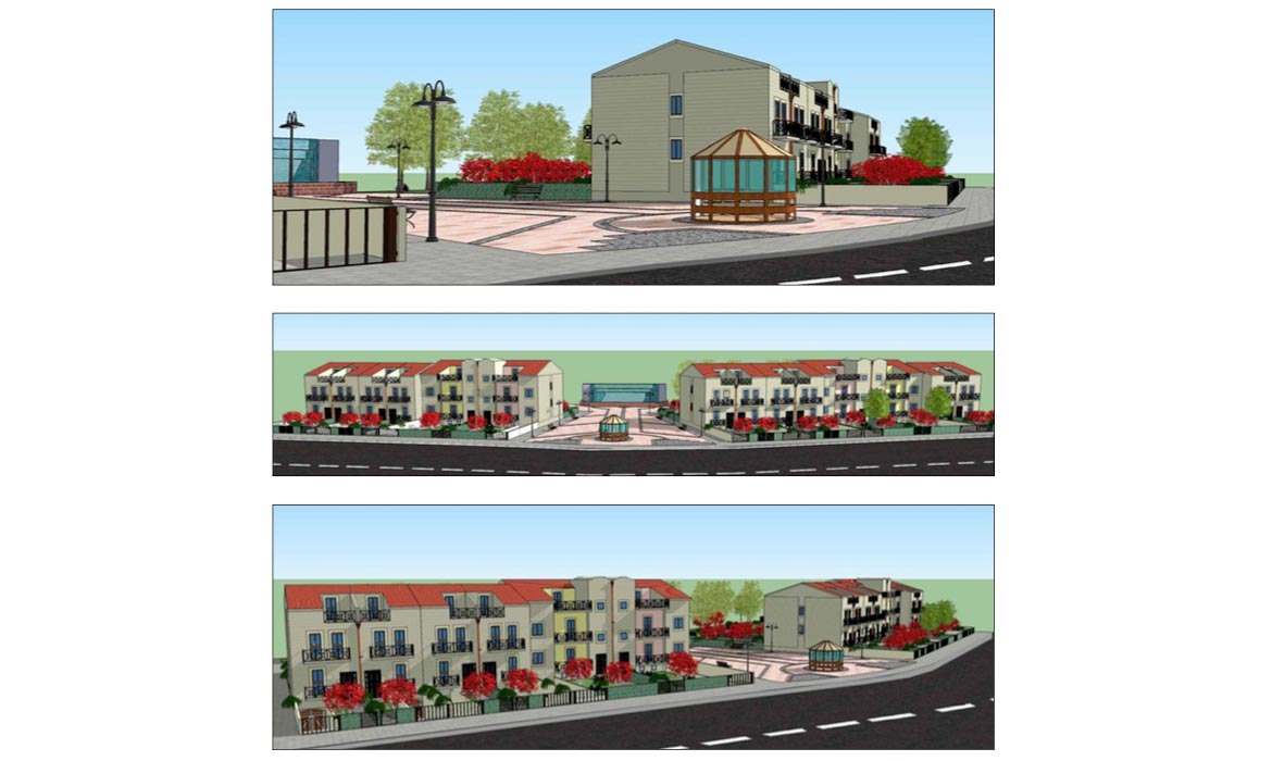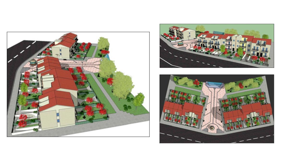 Le immagini sono riferite alla progettazione del Piano di Lottizzazione che prevede la realizzazione di 50 villette a schiera che si sviluppano su 3 piani.