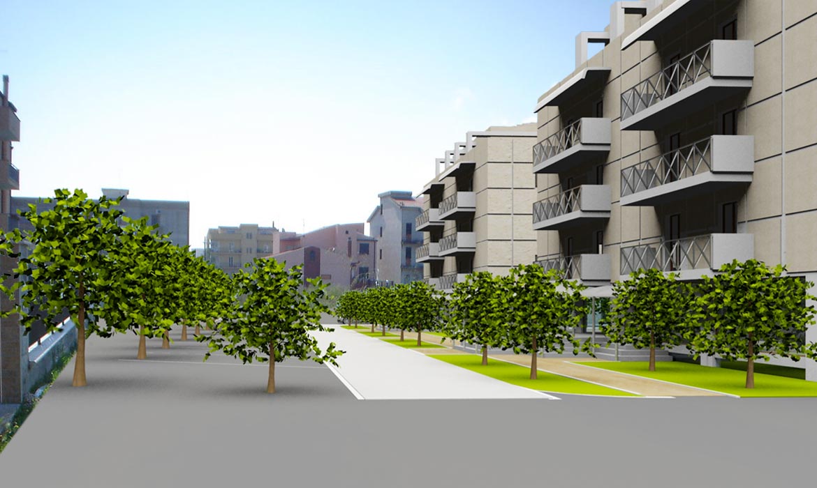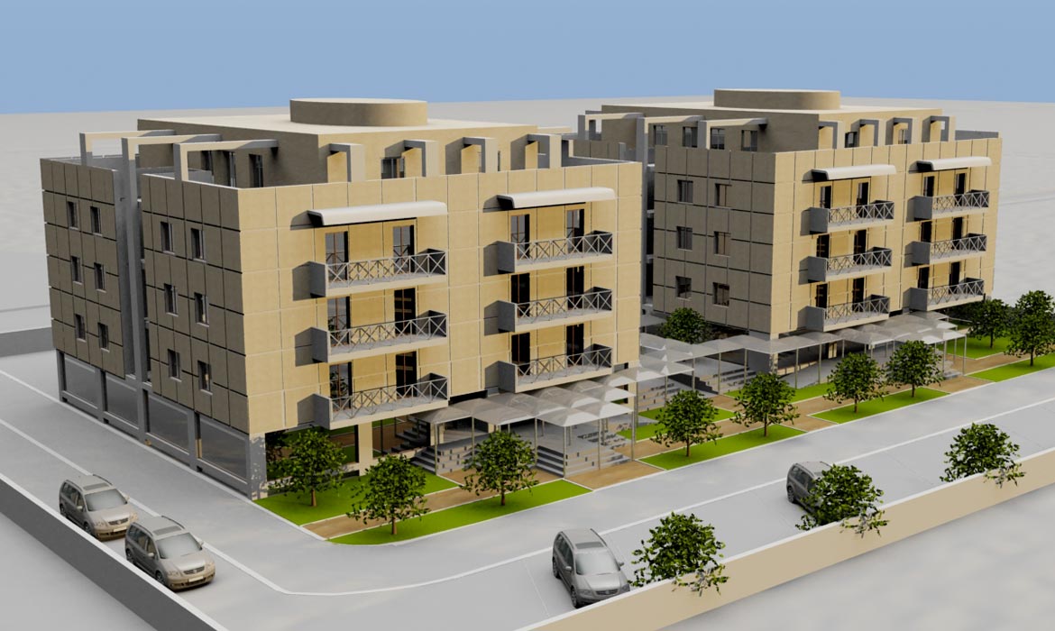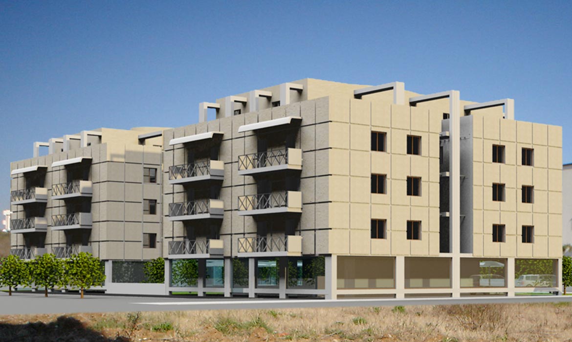 Progetto da realizzare a Marconia che prevede la costruzione al piano terra di un grosso supermercato e ai piani superiori di 24 alloggi per civile abitazione.